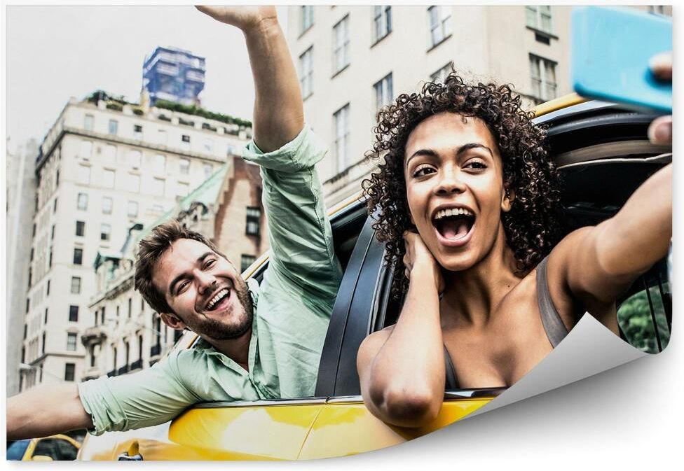 Fototapeta na wymiar Uśmiechnięci ludzie w żółtej taksówce to oryginalny pomysł na metamorfozę wnętrza. Ze względu na swoje praktyczne oraz dekoracyjne parametry będzie fantastycznym dopełnieniem pomieszczeń zaprojektowanych w każdym stylu.Fototapeta dekoracyjna Uśmiechnięci ludzie w żółtej taksówce jest zaprojektowana przez zespół profesjonalistów z dziedzinie opracowania graficznego i druku cyfrowego. Fototapeta drukowana jest na dobrej jakości tworzywie, który odznacza się solidnością – jest odporny na rozciąganie i zagięcia. To fantastyczne rozwiązanie do ochrony ściany przed zabrudzeniem.Technologia druku cyfrowego perfekcyjnie odwzorowuje detale oraz żywe kolory, każdej grafiki. Taka kreatywna ozdoba doskonale prezentować się będzie w pokoju dziennym i sypialni. Dzięki swoim praktycznym cechom przyozdobisz nią także kuchnię i łazienkę.W naszym sklepie można zakupić fototapetę Uśmiechnięci ludzie w żółtej taksówce na jednym z wybranych materiałów: samoprzylepny bądź flizelina. Materiał samoprzylepny to nowoczesne tworzywo z możliwością wielokrotnego naklejania i odklejania, a dzięki specjalnej powłoce łatwo można usunąć z niej zanieczyszczenia przy pomocy mokrej szmatki. Natomiast fototapeta flizelinowa to innowacyjne podejście do klasycznych tapet. Podczas jej montażu smarujemy klejem tylko ścianę! To doskonałe rozwiązanie na zamaskowanie nierówności ściany oraz osłonę termiczną oraz akustyczną pomieszczenia.Naszą misją jest dostarczanie najlepszych produktów dla naszych odbiorców. Dlatego jesteśmy zaangażowani w kreowanie nieszablonowych fototapet na wymiar, stworzonych z najlepszych, nietoksycznych materiałów, aby mieć pewność, że ściany naszych nabywców będą wyglądać klasycznie, nowocześnie i wyjątkowo szykownie.