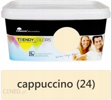 PRIMACOL Farba Trendy Colors 2,5L CappucinoFarba akrylowa z linii Trendy Colors, to gotowa do użytku wodorozcieńczalna farba przeznaczona do dekoracji wnętrz budynków.Stosowana na różnego rodzaju podłoża, takie jak: tynki mineralne, tynki polimerowe, płyty gipsowo-kartonowe, tapety z włókna szklanego, tapety typu rauhfaser, drewno, styropian, cegłę oraz beton. Po wyschnięciu tworzy odporną na ścieranie powłokę.Wydajność: 11m2/lParametry:Marka: Primacol DecorativeIlość warstw: 2Kolor dominujący: CappucinoPojemność: 2,5 LKod EAN: 5906725207333