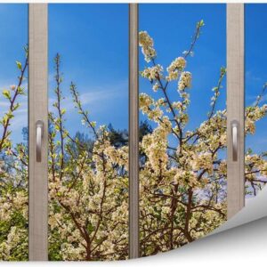 Fototapety.Pl Widok Zza Okna Na Kwitnące Drzewo Kwiaty Fototapeta Ścianę 250x250cm Fizelina